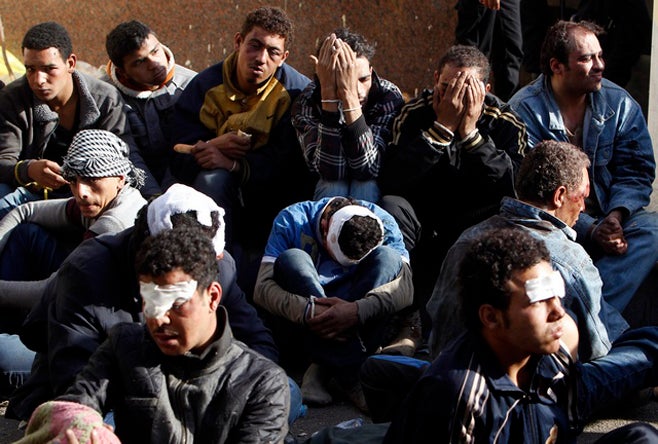 هناك مقطع فيديو صورته صحيفة الوطن المستقلة عند مركز احتجاز الإخوان المسلمين يُظهر ثلاثة رجال في ثياب مدنية يضربون رجلاً عاري الجذع كان ينزف من فمه. أحد الرجال يصيح: "بلطجي!" حتى وفي واقعة نادرة من نوعها، تدخل عنصر من قوات الأمن، ضابط أمن مركزي. ثم ركزت الكاميرا على رجل آخر مصاب بكدمات وهناك دماء على وجهه. كان هناك رجلان يستجوبانه، يقولان: "من أعطاك نقود؟ من ورائك؟ أخبرنا وإلا ضربوك.. سوف يقتلونك" وراح رجل يرتدي بدلة يقول: "من مِن الحزب الوطني؟ الآخرون الذين قبضنا عليهم اعترفوا بمن تكون، أخبرنا باسمك. فتشوه".