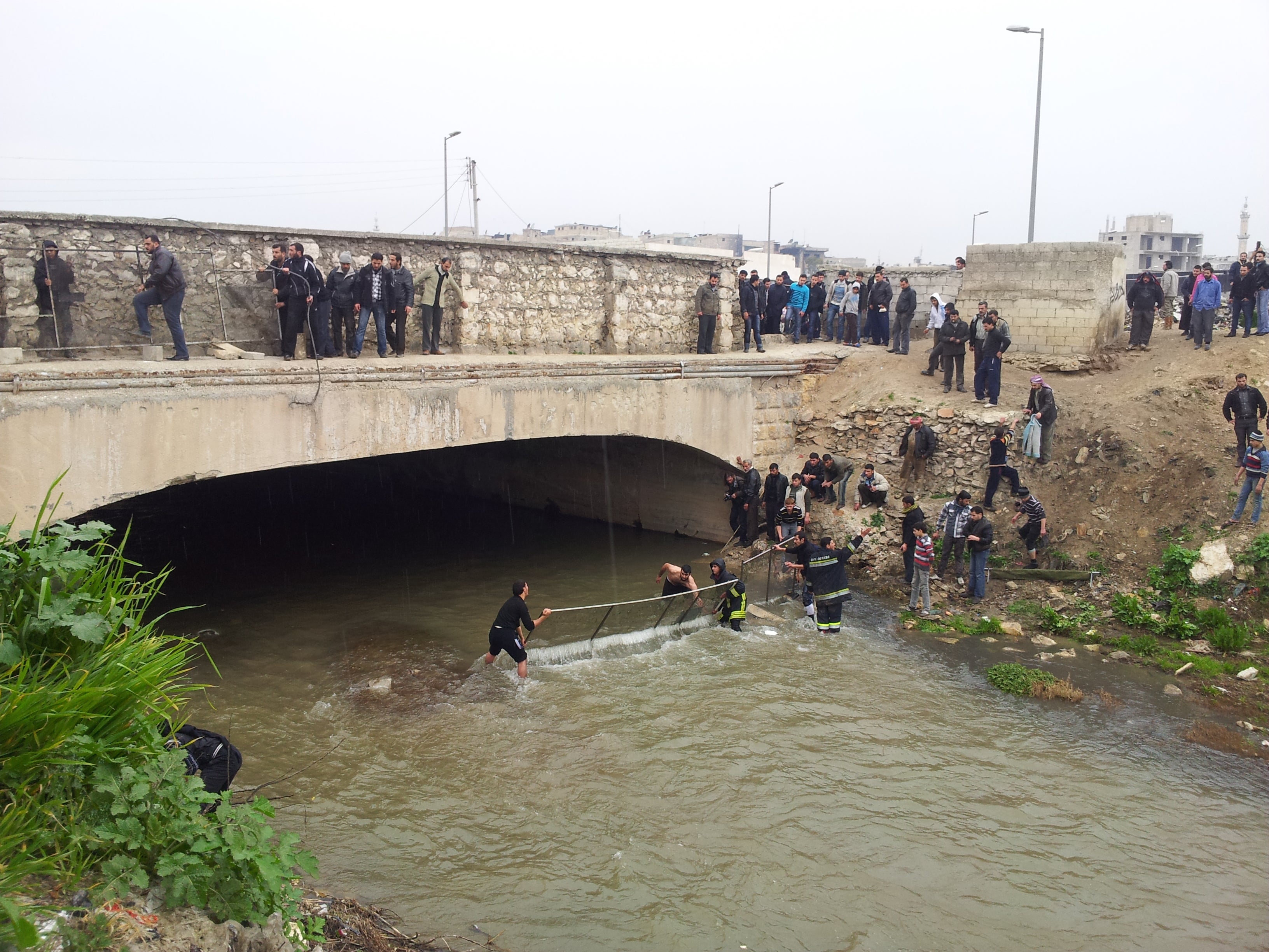 قال نشطاء محليون إنهم لمحوا الجثث في النهر شمالي الجسر، في موضع أقرب للخط الفاصل، في عدة مناسبات، لكنهم عجزوا عن استخراجها حتى حملها إليهم تيار النهر بسبب قناصة الحكومة. إن التهديد المستمر من قناصة الحكومة في هذه المنطقة الخاضعة لسيطرة المعارضة يستبعد احتمال تمكن أي شخص من إلقاء الجثث بانتظام في النهر هناك، بحسب هيومن رايتس ووتش.