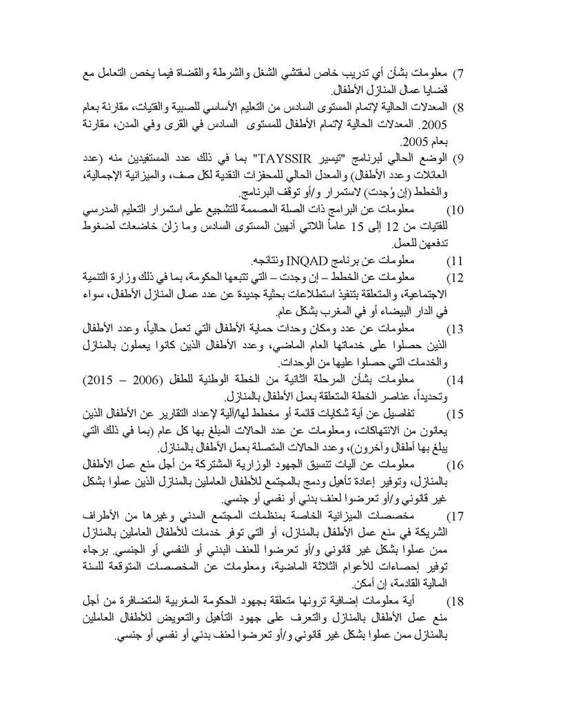 IV. جهود الحكومة المغربية من أجل معالجة مشكلة عمل الأطفال بالمنازل