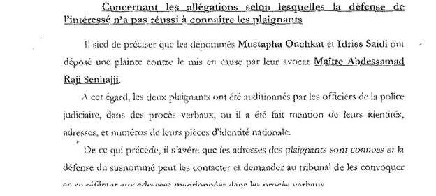 بشأن ادعاءات فريق دفاع [المومني] لم ينجح في الاتصال بالمشتكين