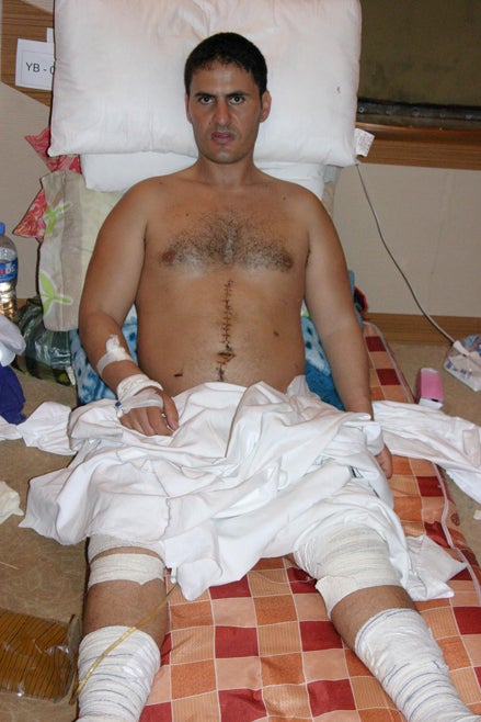 Muhammad Bashir, 42, told Human Rights Watch that he was standing outside his home in Misrata's Al Jazeera district on March 25 when a mortar shell struck nearby, he believed fired by government forces, wounding him badly in the leg. He said that there had been no fighting in the area. Bashir, a police officer who said he was not taking part in the fighting, had the lower part of his left leg amputated before being evacuated by ship.