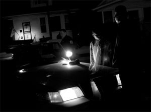 Photograph: Four men are questioned about drugs by police in Chicago’s South Side. © 2009 Jon Lowenstein/NOOR