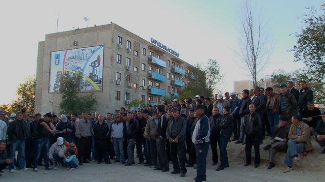 Au cours d'entretiens réalisés avec Human Rights Watch, les travailleurs interviewés issus des trois compagnies pétrolières ont décrit à notre organisation les violations des droits humains perpétrées quelques mois avant et pendant les grèves de 2011. Les sociétés question ont entravé les efforts des travailleurs dans leur quête de négociations collectives et ont licencié en masse une fois les grèves pacifiques terminées aux dires des salariés. Les autorités ont tenté de casser les grèves pacifiques — en ayant recours à la force, à une occasion particulière — et ont fait emprisonner les dirigeants syndicaux pour des motifs politiques, enfreignant, ce faisant, les règles régissant les procès équitables. Des exigences excessives en matière de négociations collectives jumelées à une interdiction générale de faire grève applicable aux travailleurs du secteur pétrolier en vertu de la législation kazakhe font de plus entrave à l'exercice du droit des travailleurs, comme l'a découvert Human Rights Watch.