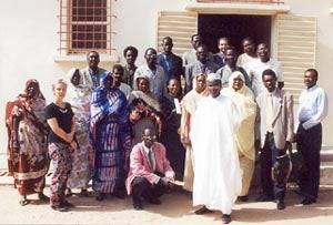 Les plaignants tchadiens, leurs supporters et leurs avocats au tribunal de N'Djaména, après avoir porté plainte contre d'anciens hauts fonctionnaires du régime d'Hissène Habré, le 26 octobre 2000.