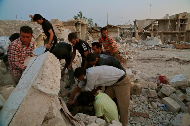 アザズ住民の“アフメド”は、家にいた少なくとも12人の家族が空爆で殺されたと証言。彼は、まだほかに家族4人ががれきの下敷きになっていると考えており、次のように話した:
