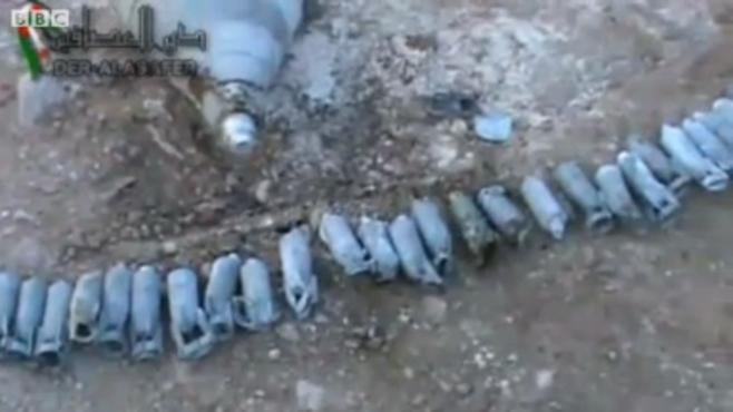 Video footage posted by Syrian activists of the immediate aftermath of the attack shows children and adults lying severely wounded on the ground, with injuries consistent with those caused by cluster bombs.