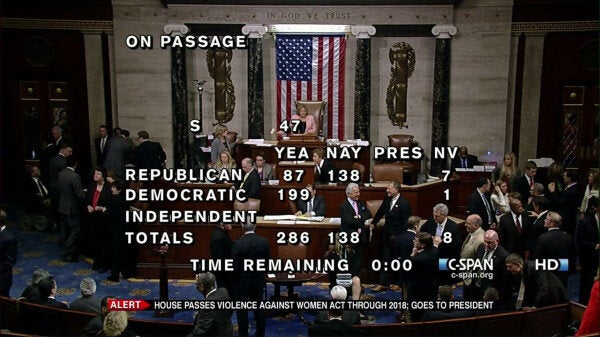 VAWA is the primary federal law providing legal protection and services to counter domestic abuse, sexual violence, and stalking. Congress has reauthorized VAWA twice since it originally passed in 1994. The Senate passed S. 47, a bipartisan bill to renew VAWA, with 78 votes on February 12. The House approved S. 47 with a vote of 286 to 138. The House took the vote after rejecting another bill that would have watered down protections for victims, Human Rights Watch said.