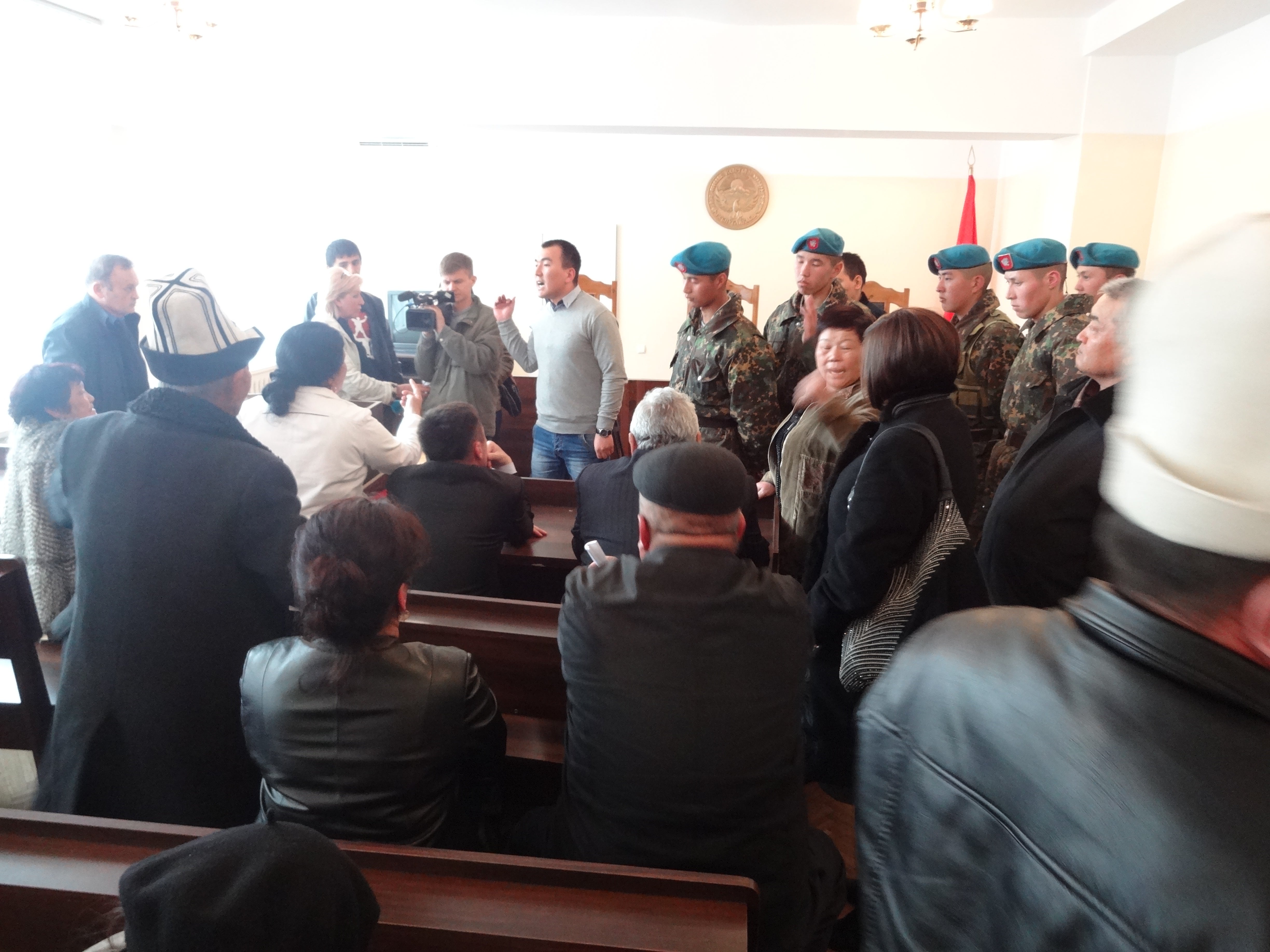 Some of the onlookers interrupted Niyazaliev’s lawyers as they addressed the court, one shouting, “Do you even have a license [to practice law]?” When the lawyers objected to this behavior, protesting they had already suffered attacks that morning, someone in the gallery screamed out, “You’ll get even more.” The judges’ called for quiet but took no other steps to prevent or end the disruptions.