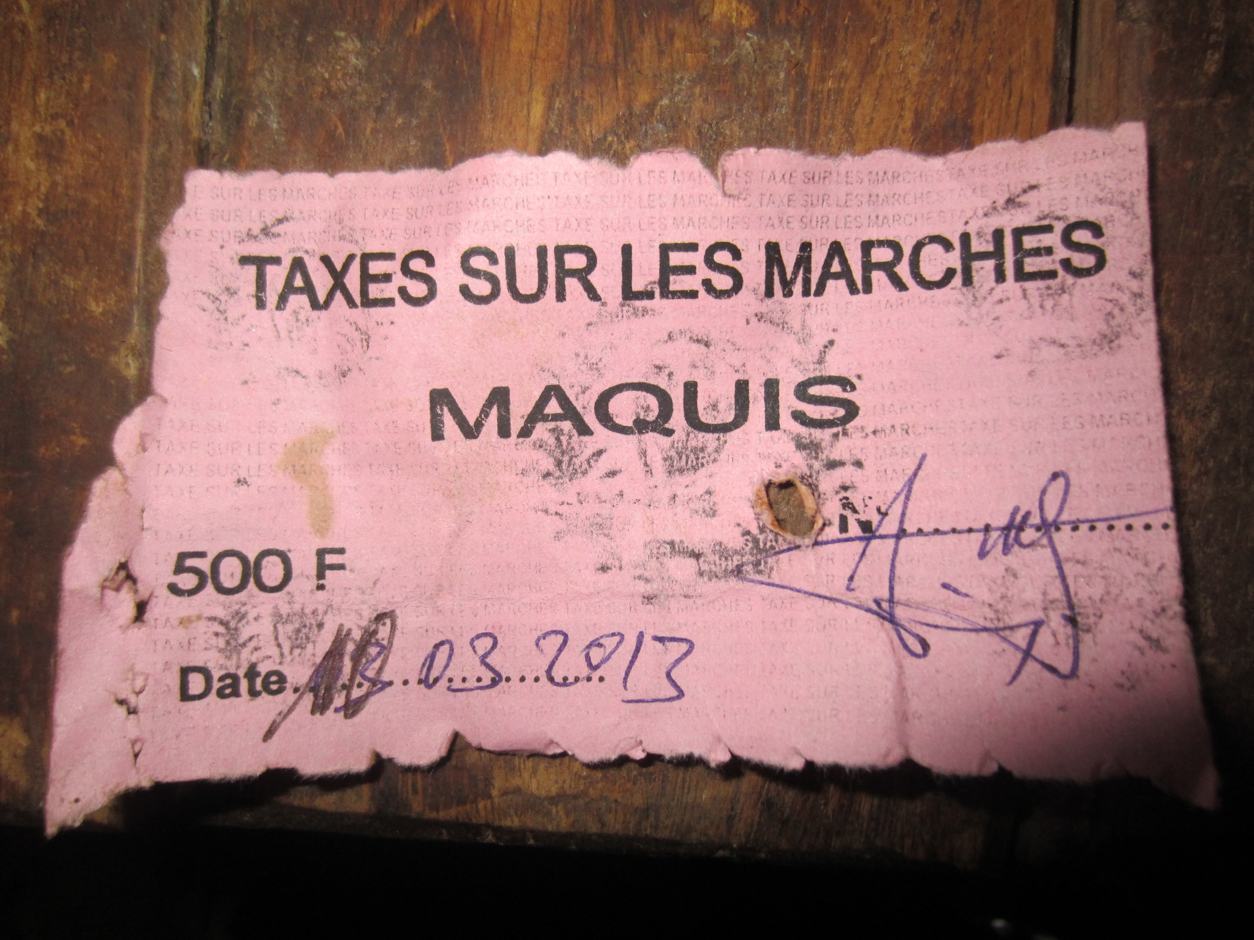 In the village of Kaade, residents said soldiers also extort money from local businesses, particularly small restaurants (known as maquis)and shops. Through mid-May, the FRCI charged each of the 20 to 30 stores in the village 500 CFA a week. Beginning in late May, the soldiers doubled the price. The soldiers are so confident in their impunity that they give weekly receipts to each store. Human Rights Watch took pictures of receipts that read “Tax on the markets,” with the amount, the date, and a signature from the security force member. A woman who runs a maquis said: