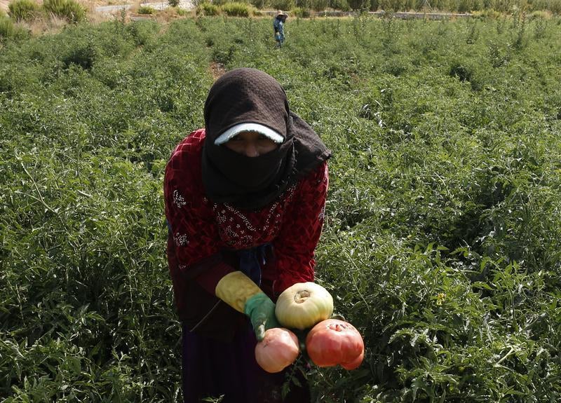 Safia, 35, taught school in Syria. She fled the conflict for northern Lebanon, where she picks eggplants, strawberries, and “bad, rotten things” as an agricultural day laborer. She earns about $11 for eight hours of back-breaking work.