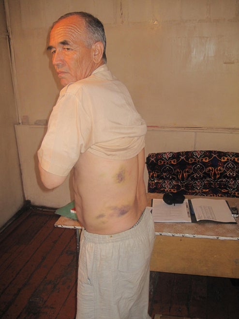 Хотя присутствие милиции и прокурора не позволяло Аскарову свободно говорить, он показал адвокату ссадины на левом боку и пояснице, которые Токтакунов сфотографировал. По мнению адвоката, они остались после жестоких побоев, которым Аскаров был подвергнут вскоре после задержания.