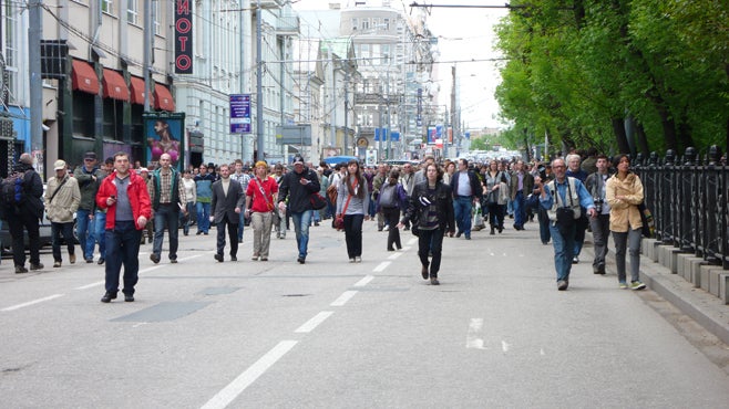 В «прогулке» приняли участие до 10 тыс. человек, движение по Бульварному кольцу было перекрыто. По изначальной договоренности с организаторами участники не скандировали лозунгов и не несли плакатов. Некоторые шли с белыми ленточками и хлопали в ладоши, заявляя о себе как о свободных гражданах – хозяевах собственного города. Полиция не вмешивалась; дойдя до лагеря на Чистых прудах, «гулящие» разошлись.