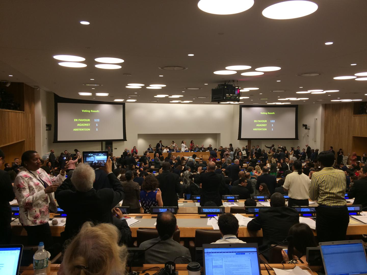 صوتت الدول لتبني معاهدة حظر الأسلحة النووية في مقر الأمم المتحدة بنيويورك يوم 7 يوليو/تموز.