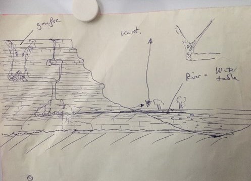 رسم توضيحي أعده الخبير الجيولوجي أنطوان دي هالر للتركيبة المحتملة للهوتة وعمقها. ©هيومن رايتس ووتش