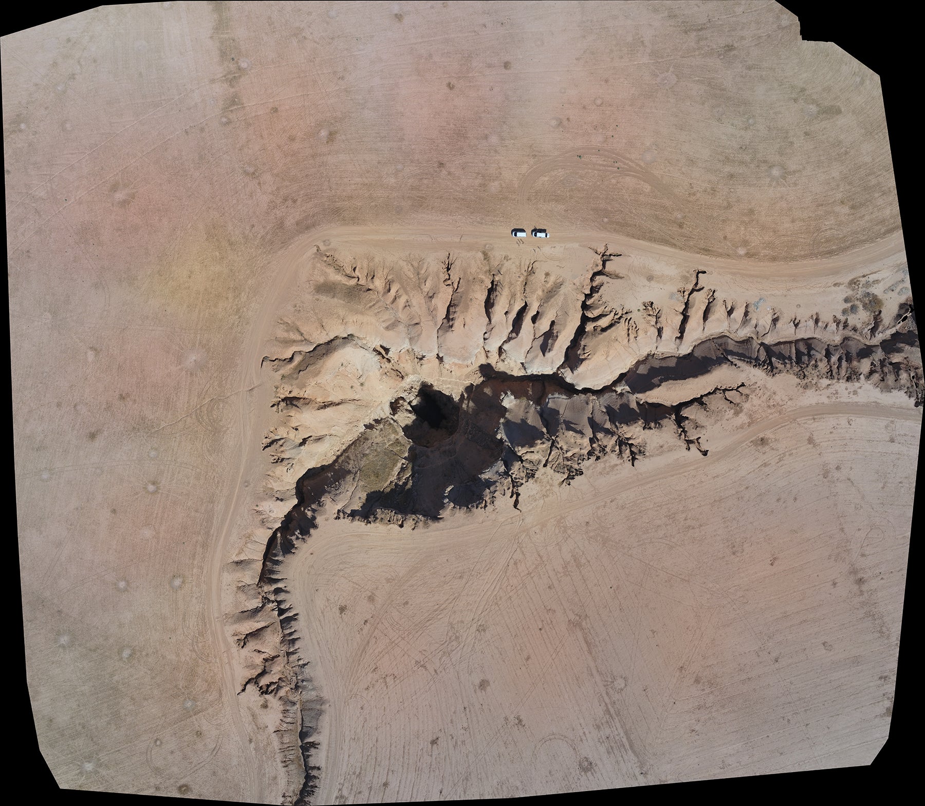 صور مركبة لحفرة الهوتة التُقِطت في 28 سبتمبر/أيلول 2019 بواسطة الطائرة المسيّرة من طراز "باروت أنافي". ©هيومن رايتس ووتش
