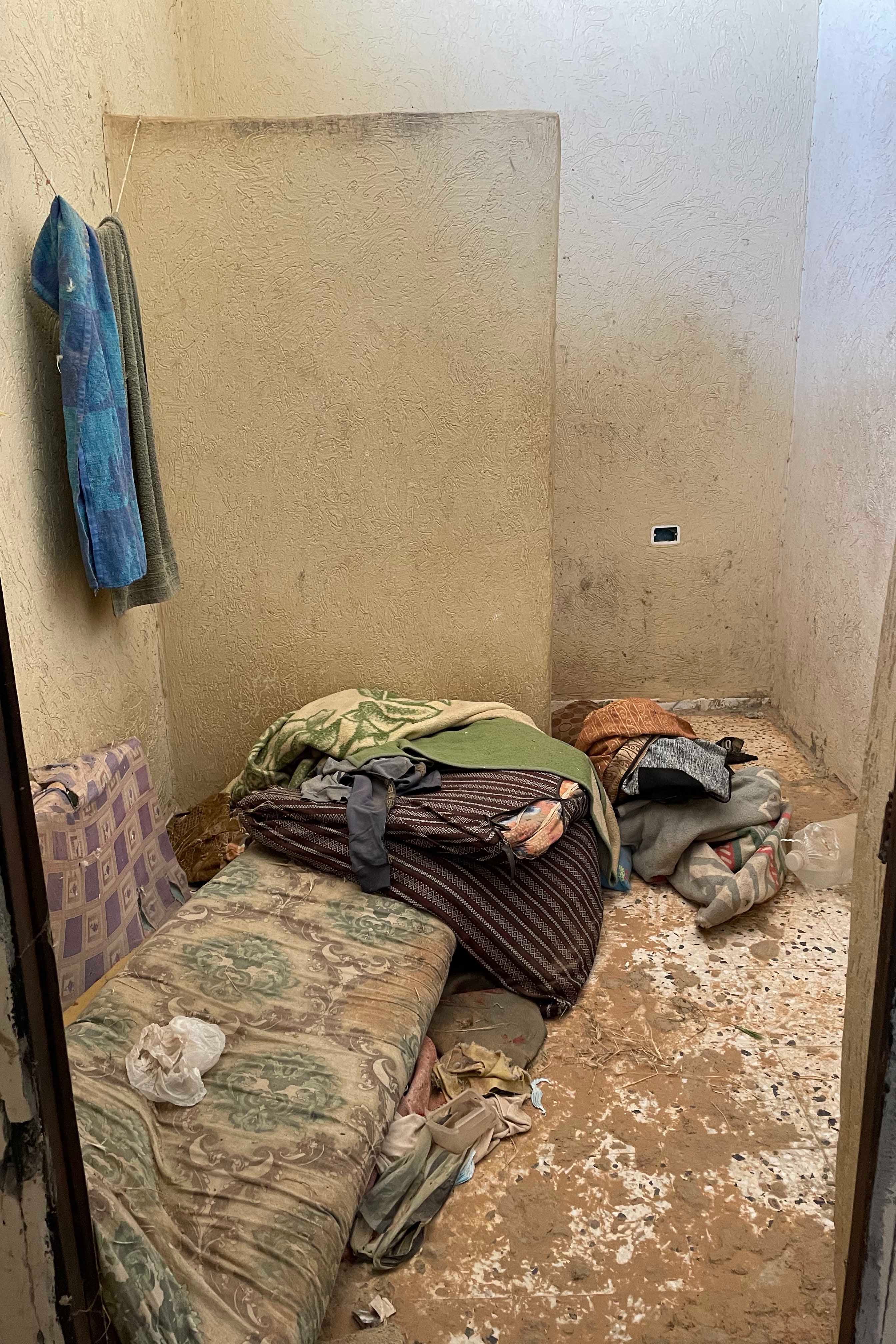 زنازين مهجورة في "سجن الدعم المركزي" في ترهونة، الذي كان سابقا تحت سيطرة ميليشيا الكانيات التي استخدمته مركزا للاستجواب، والاحتجاز، والتعذيب.