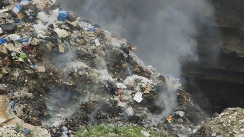 حرق النفايات في الهواء الطلق في المجادل جنوبي لبنان. © 2017 هيومن رايتس ووتش