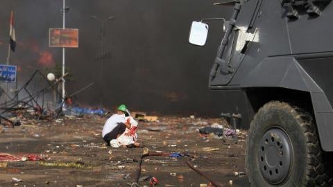 أطاح الجيش المصري بالرئيس الأسبق محمد مرسي واعتقله يوم 3 يوليو/تموز 2013 في أعقاب احتجاجات عارمة مناهضة للإخوان. عندها نظّم أنصار مرسي احتجاجات واسعة في كل أنحاء مصر، وتجمّعوا في ميدانين رئيسيين في القاهرة، هما رابعة والنهضة. وثّقت هيومن رايتس ووتش ستة حوادث أطلقت فيها قوات الأمن النار بشكل غير قانوني على حشود من المتظاهرين في أغلبهم سلميين بين 3 يوليو/تموز و16 أغسطس/آب، مما أسفر عن مقتل 1,185 شخصا على الأقل. قالت هيومن رايتس ووتش إنّ عمليات القتل الجماعي هذه تُشكّل على الأرجح جرائم ضدّ الإنسانية، وتتطلب تحقيقا دوليا.