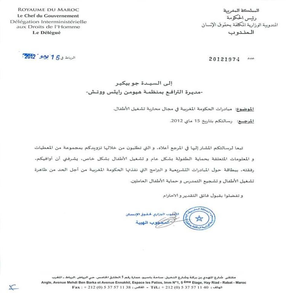 [127] انظر: Le Matin, “Child Labor: Ending the Exploitation” (“ Travail des enfants : Mettre fin à l'instrumentalisation “ ), June 13, 2012, available at http://www.lematin.ma/express/Travail-des-enfants-_Mettre-fin-a-l-instrumentalisation/167739.html
