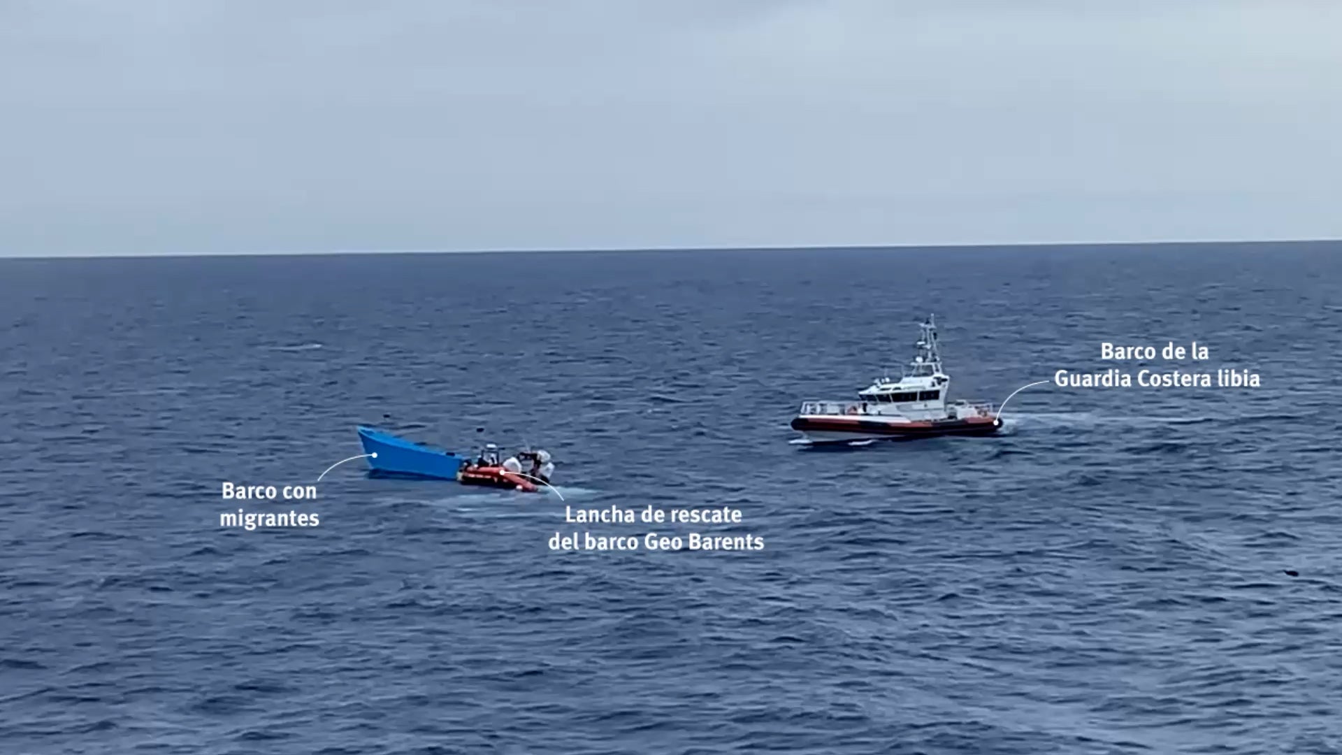Durante el segundo rescate, fui testigo de cómo una patrullera libia se dirigía a toda velocidad hacia la embarcación en peligro mientras la tripulación de MSF aún ayudaba a las personas a subir a la lancha inflable utilizada para los rescates. Desde el barco libio, alguien ordenó por radio a MSF que detuviera el rescate o abrirían fuego. Tras una tensa negociación, el equipo de rescate logró finalmente subir a todas las personas al Geo Barents. La patrullera libia—construida en un astillero italiano y donada por el gobierno de Italia—rodeó el barco de rescate varias veces antes de alejarse a toda velocidad.