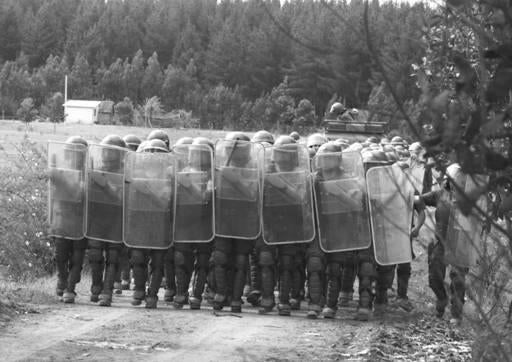 Carabineros al interior de la comunidad Temucuicui, Provincia de Malleco. Diciembre de 2001.