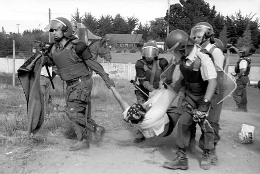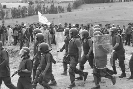 Con frecuencia, la policía no distingue entre la protesta pacífica y las acciones ilegales que plantean una verdadera amenaza al orden público reprimiendo ambas con la misma dureza, a veces con violencia indiscriminada e insultos racistas. Documentamos algunos casos de abuso policial en el Capítulo V de este informe. Con algunas excepciones notables, los activistas mapuche suelen enfrentarse a una actitud desfavorable e incomprensiva de las autoridades del gobierno, políticos y la prensa. Son considerados con frecuencia agitadores violentos que se oponen al desarrollo económico del país y defienden la secesión de la Araucanía del resto del Estado.[13] De hecho, los mapuche quieren una mayor autonomía en la administración de sus asuntos dentro de su territorio ancestral, pero no propugnan la secesión.