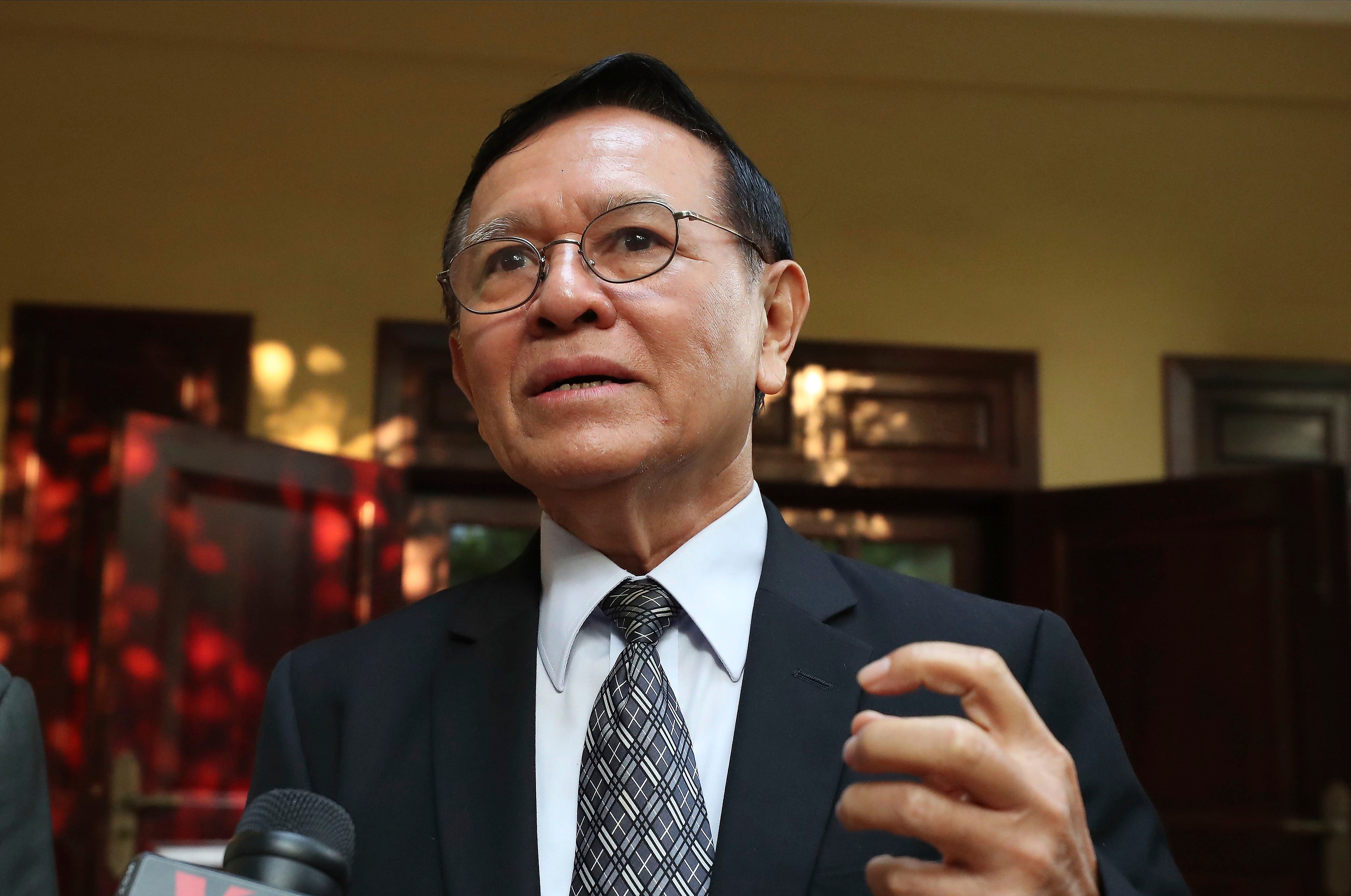Kem Sokha, chef de l’opposition au Cambodge, répondait aux questions d’un journaliste à son domicile à Phnom Penh (où il était assigné à résidence après avoir été détenu) le 16 janvier 2020, peu avant de se rendre au tribunal pour une nouvelle audience de son procès.