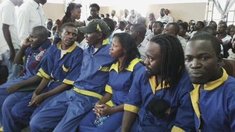 Les six ont été conduits au poste de police « P2 » de Goma, où ils ont été interrogés en l’absence d'un avocat. La police a également confisqué deux ordinateurs portables, six téléphones cellulaires et les bannières. Quand Human Rights Watch a rendu visite aux activistes détenus ce soir-là, l'un d'eux avait une profonde entaille au bras gauche qui lui avait été infligée lors de son arrestation.