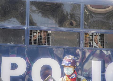(Bangkok, 13 février 2021) - La junte militaire du Myanmar devrait immédiatement libérer sans condition les personnes arrêtées arbitrairement depuis le coup d’État du 1er février et abandonner les charges à leur encontre, a déclaré Human Rights Watch aujourd'hui. Parmi les détenus figurent des dirigeants politiques, des représentants du gouvernement civil, des fonctionnaires, des activistes, des étudiants, des médecins, et des personnes ayant manifesté contre le coup d'État.
