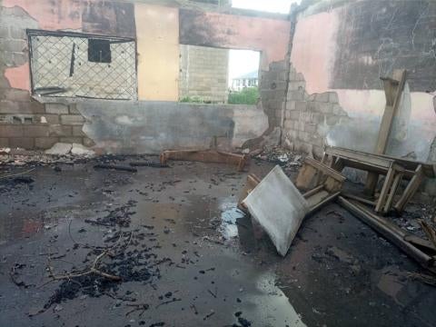 Le 5 avril, une autre salle de classe de l’école a été incendiée. Human Rights Watch a parlé à un homme qui a vu la salle de classe en feu, et à un journaliste qui a visité l’école le 6 avril et a examiné trois photographies montrant les dommages causés par l’incendie.
