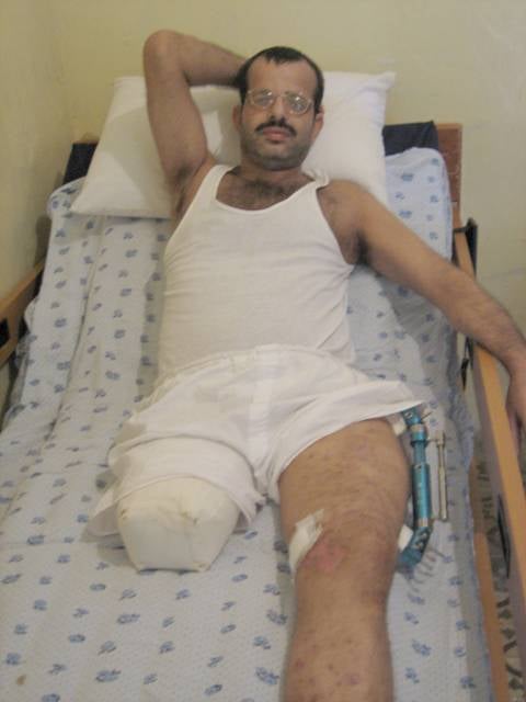 أحمد فواز، فقد ساقه اليمنى في الهجوم الإسرائيلي على سيارتي الإسعاف في قانا. نديم حوري / هيومن رايتس ووتش 2006©