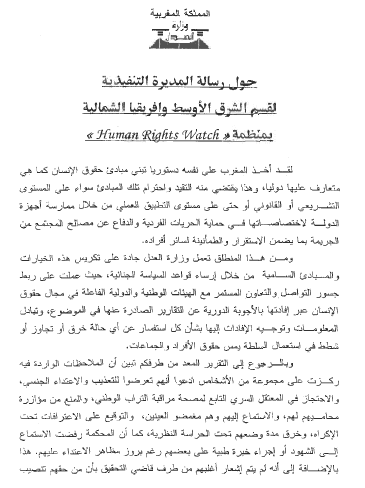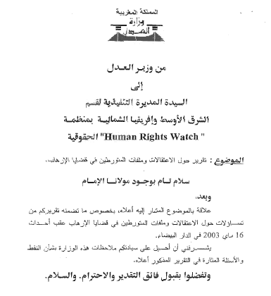رسالة من وزير العدل إلى السيدة المديرة التنفيذية لقسم الشرق الأوسط وافريقيا الشمالية منظمة هيومن رايتس ووتش