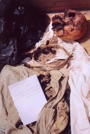 أربطة وجدت على هذه البقايا البشرية التي انتشلها أقارب الضحية في البرجسية. (الحقوق محفوظة لـ هيومن رايتس ووتش).