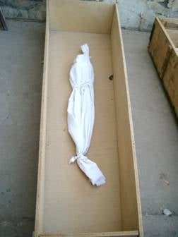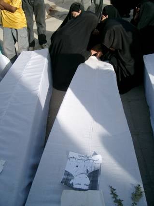 وفي 14 مايو/آيار 2003 تم نقل جميع بقايا الجثث إلى النجف لدفنها، بما فيها خمس جثث لم يتم التعرف على هويات أصحابها. وبدون فحص الطب الشرعي الملائم فإن هذه الجثث قد اصطحبت معها إلى القبر أية معلومات كان يمكن أن تقدمها بشأن هويات أصحابها أو طريقة موتهم.
