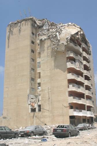 وكان مسؤولو الدفاع المدني منهمكين في انتشال الجثث بعد غارةٍ سابقة أصابت "معهد صيدون" (انظر الحالة السابقة) عندما أصيب المبنى بصاروخين: أصابه واحدٌ في قمته، وأصابه الثاني في جانبه عند مستوى الشارع. وبعد الغارة، سبب سقوط الأنقاض إصاباتٍ ووفياتٍ أخرى، فقد انتشرت الأنقاض في المنطقة المجاورة للمبنى وبلغت سماكتها متراً. وعلى غرار الشاهد الآخر الذي قابلناه، قال غريب لـ هيومن رايتس ووتش أن المبنى كان خالياً من أي حضورٍ لحزب الله: "لم يكن فيه شيءٌ على علاقةٍ بحزب الله".254