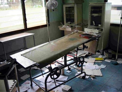 The operating room at Nyakunde hospital where 14 terrified Hema hid until they were discovered and killed a few days later, September 2002. © Anonymous