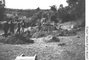 Villagers from the town of Donje Obrinje, Kosovo, bury eighteen members of the Deliaj familly massacred while fleeing from Yugoslav police into the nearby forest.