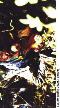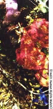 The body of Donieta Deliaj, five, lying next to the bodies of her mother and older sister. (Her mother's foot can been seen at the top of the picture) All were shot in the head at close range while fleeing Yugoslav police in the forest outside the village of Donje Obrinje, Kosovo. Eighteen members of the Deliaj family were killed the attack.
