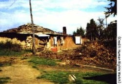 A destroyed home in the town of Gornje Obrijne, Kosovo following the assault of Yugoslav forces on this mainly ethnic Albanian village.