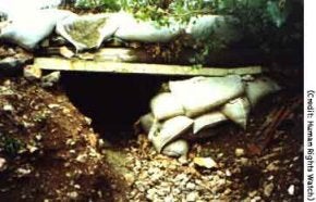 A Kosovo Liberation Army (KLA) bunker, according to Yugoslav authorities, lies near the site where four bodies were found, allegedly killed by the KLA in Klina, Kosovo.