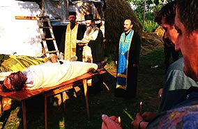 The funeral of three Serbs in Belo Polje, a village near Pec. The three were executed by KLA members on June 19. Each of them was shot between the eyes at point blank range.