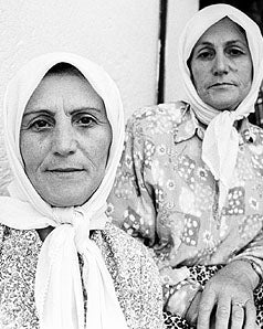 Fejzie Abdulmexhidi (left) and Hajrie Abdulmexhidi, whose husbands were killed on May 26 by Serb police. Fejzie explained to Human Rights Watch what happened when the police arrived that day: