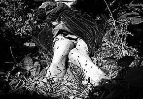 ![]() ©Human Rights Watch 1999 One of four middle-aged men whose bodies were found on June 20 lying near a dirt road leading to the village of Pataqan, in southern Kosovo. The men, two of whom had their hands tied, had been summarily executed no more than a week before their bodies were discovered. Their identity, and even their ethnicity, was unknown. |
