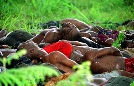 Le Charnier de Yopougon, une banlieue d'Abidjan où les corps de 57 personnes ont été trouvées; ces personnes tuées le 26 octobre par des gendarmes à Abobo, une autre banlieue d'Abidjan, furent transportées à Yopougon après le massacre.