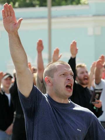 1. Teilnehmer einer nationalistischen Kundgebung gegen die 'Moscow Pride' salutieren. 26. Mai © 2007 Reuters Limited.