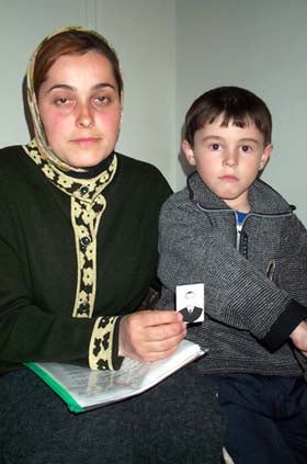 Birlat Sadulayeva with her son holds a photograph of her husband, Vakhid Daudov (b. 1960), who was detained and "disappeared" in Argun on December 15, 2001. © 2002 Johanna Bjorken/Human Rights Watch. MORE ON: Human Rights in Russia and Chechnya |