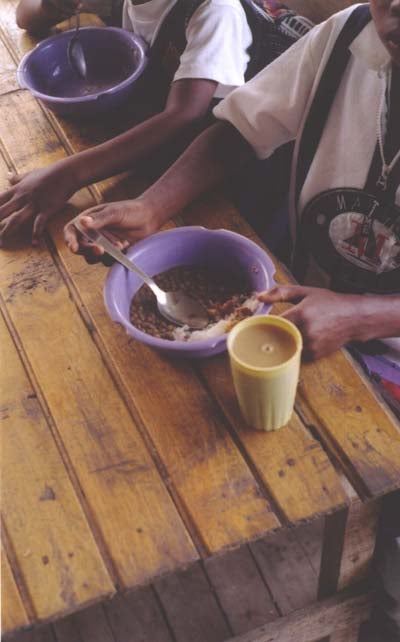 Displaced children eat at a community kitchen in a shantytown outside Bogotá.