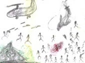 Auf einer Forschungsreise an der Grenze zwischen Tschad und Sudan gaben Mitarbeiter von Human Rights Watch Kindern Papier und Malkreiden. Sie sollten beschäftigt werden, während die Researcher ihre Eltern befragten. Ohne jede Anleitung zeichneten die Kinder ihre Kriegserlebnisse: die Angriffe der Dschandschaweed, die Bombardements durch sudanesische Regierungstruppen, Schusswechsel, das Niederbrennen von Dörfern und die Flucht in den Tschad. Klicken Sie auf die einzelnen Bilder, um eine vergrößerte Ansicht der Zeichnungen und die Kommentare der Kinder anzuzeigen.