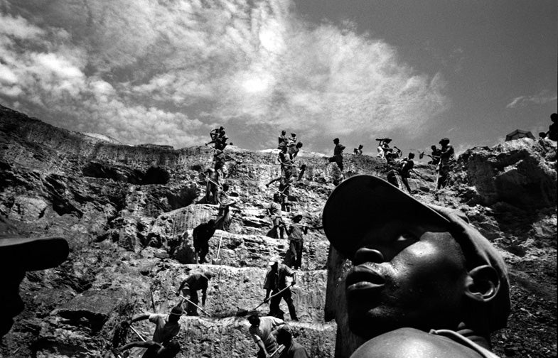 Miners working in the grueling conditions of an open pit gold mine in Watsa, northeastern Congo.
