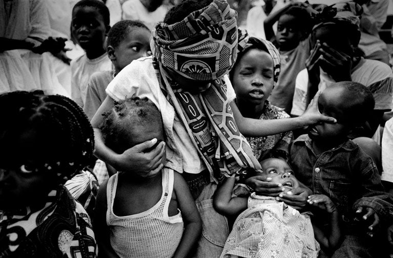 Small children at a deliverance ceremony. During the ceremony, children's eyes and ears are blocked to disrupt the transmission of "sorcery." © 2005 Marcus Bleasdale